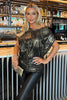 Black & gold print asymmetric draped top combines a classic shape with a striking gold print, making it the perfect wardrobe addition for the party season. Featuring a relaxed fit, a boat neckline, ruched detailing on one shoulder and draping. Style it with leather looks, strappy heels, and your favourite jewellery to complete the look.