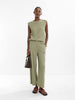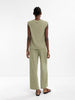 Super comfortable fit, textured top with gold button detail. Light green moss in colour. Sleeveless, loose fit top.
