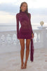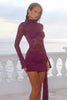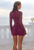 Stunning berry delicate lace long sleeve mini dress! On trend transparent lace & a elegant lace sash give this dress a stand out look. Features centre back invisible zipper. Lined with stretch. Perfect for a festive night or a date night!