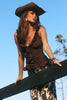 Brown ruffle feminine frills top with V cut neckline. Perfect girly look. Invisible side seam zip. Lined fabric.